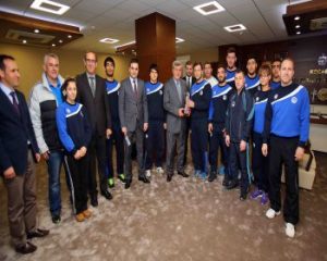 Judocularımız kupayı Başkana hediye etti